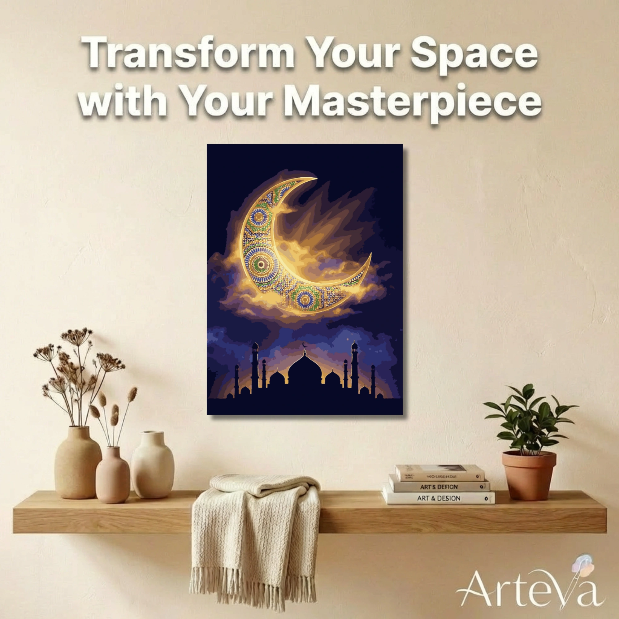 مثالية لشهر رمضان والأعياد، وتتحول إلى قطعة فنية رائعة تناسب غرفة المعيشة أو الصلاة كتذكير بجمال الإيمان وروحانية
